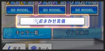 「おまかせ装備」ボタンをタップすると、そのチームのアクトレス全員に対して、現在、所持しているギアの中から適切なギアを自動的に判別して装備します。