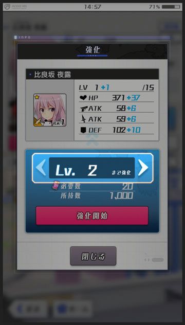 キャラクター強化ウインドウで、強化したいレベルを選択し【強化開始】ボタンをタップします。