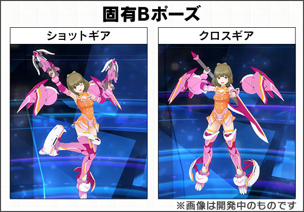 「ゴールド/アニマEX交換所」に「ギアカラー案B」が追加されているキャラクターに限り、「最終進化状態かつLv.MAXの専用ギアを4部位装備」すると、新たに固有Bポーズが追加されます。