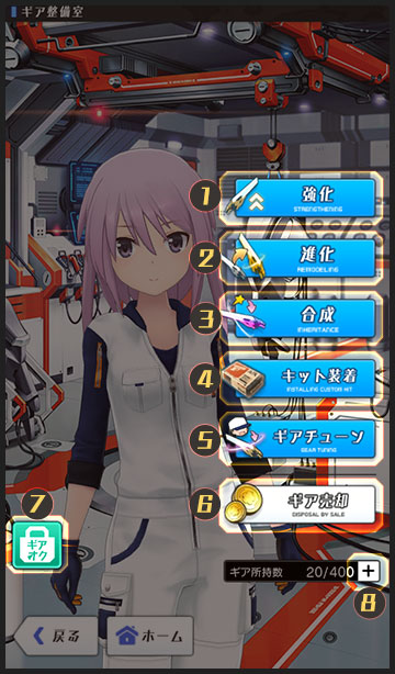 ギア整備室ではギアの強化や進化、合成などが行えます。