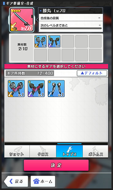 ベースにするギアと素材にするギアを選択しベースにするギアに対して、素材にするギアの品質や経験値を合算できます。