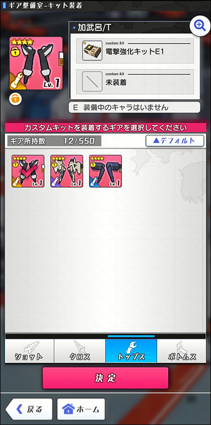 タップすると、ギア合成画面へと進みます。 - ④【キット装着】ボタン