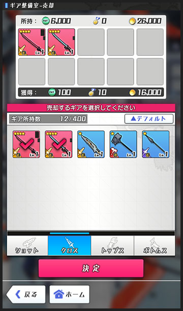 ギアを売却すると、売却するギアに応じた量のゴールドを獲得できます。