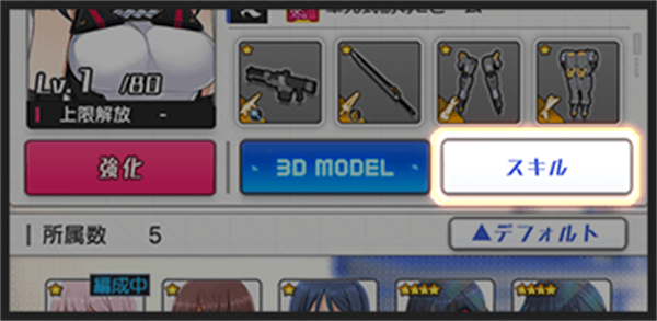 タブを左右にスワイプすることで、チームメンバーの編成順序を変更できます。 - ②【3DMODEL】ボタン