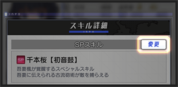 2.スキル詳細ウインドウの「SPスキル」欄にある【変更】ボタンをタップします。