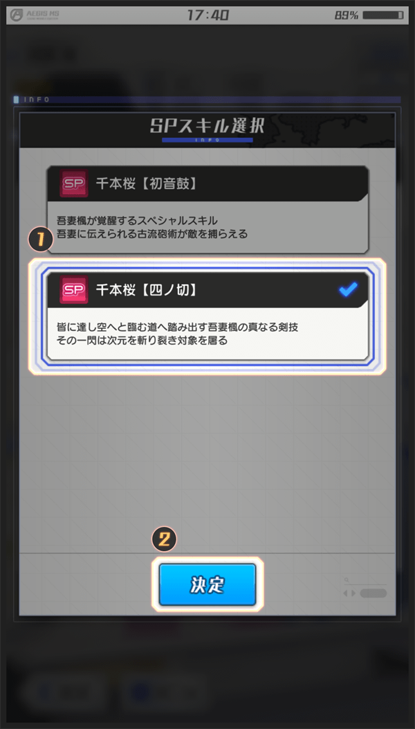 3.変更したいSPスキル項目をタップ後に【決定】ボタンをタップすると変更が反映されます。
