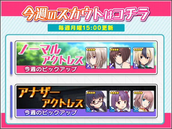 ※ピックアップスカウトでは、対象となる★4アクトレスのスカウト率がアップします。
