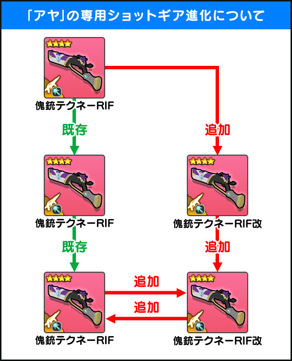 さらに、各種任務をクリアして「専用ギア」や「ギア進化素材」を集めると、ドールたちの派生ギアが作れる!