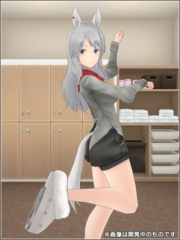 アクセサリー「午ミミテイル」と「蹄鉄スリッパ/午」を一緒に着用すると、ドレッサー画面で固有モーションが見られます。