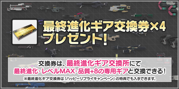※最終進化ギア交換所は2/2(月)15:00に公開終了となりますが、「最終進化ギア交換券」を所持している場合は、2/9(月)14:59まで利用可能です。