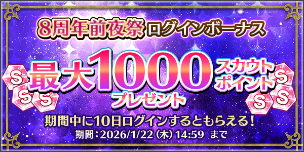 ※本スカウトはスカウトEXPおよびスカウトレベルには影響しません。