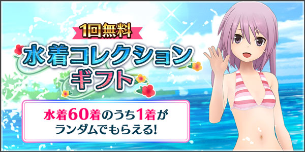 ※服袋コレクション「水着vol.1~16」の水着から、ランダムで1着が提供されます。詳細は水着コレクションギフトの提供割合詳細ページをご確認ください。