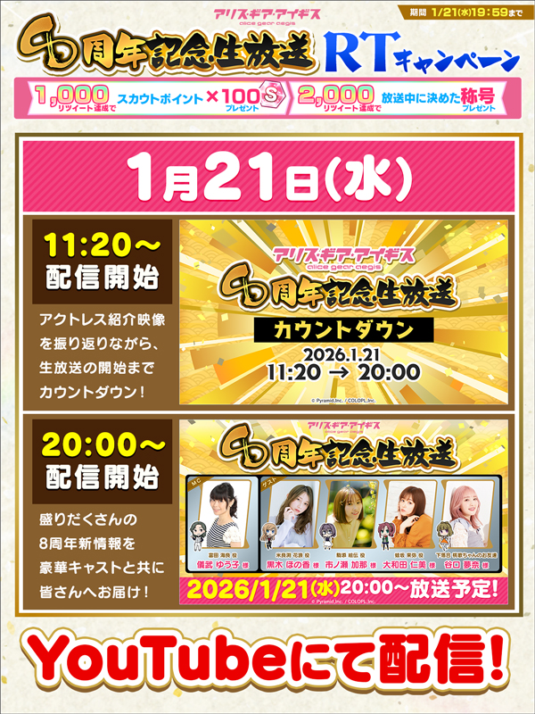 最新情報盛りだくさんの8周年記念生放送が決定!