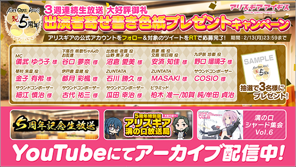 なお、5周年記念3週連続生放送は、記念色紙のプレゼントキャンペーンも実施しており、アーカイブも残っておりますので、興味のある方は下記からご視聴いただければ幸いです。