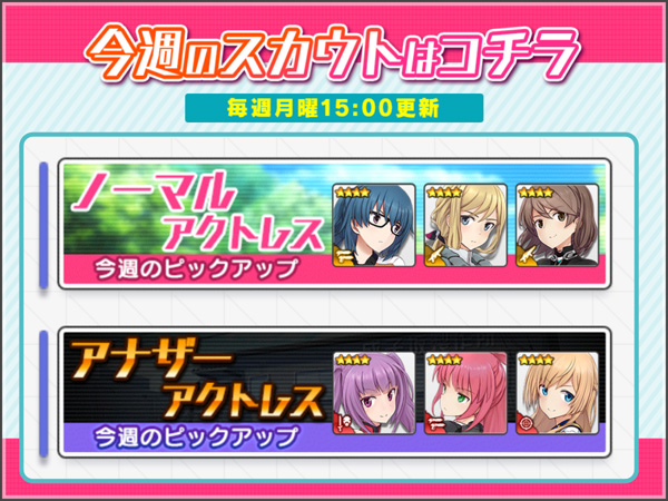 ※ピックアップスカウトでは、対象となる★4アクトレスのスカウト率がアップします。