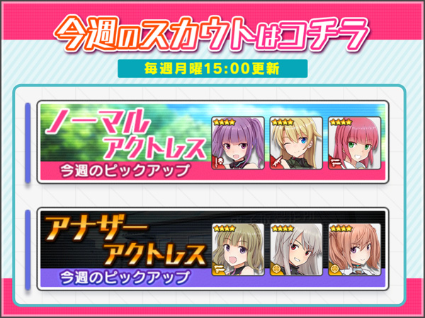 ※ピックアップスカウトでは、対象となる★4アクトレスのスカウト率がアップします。